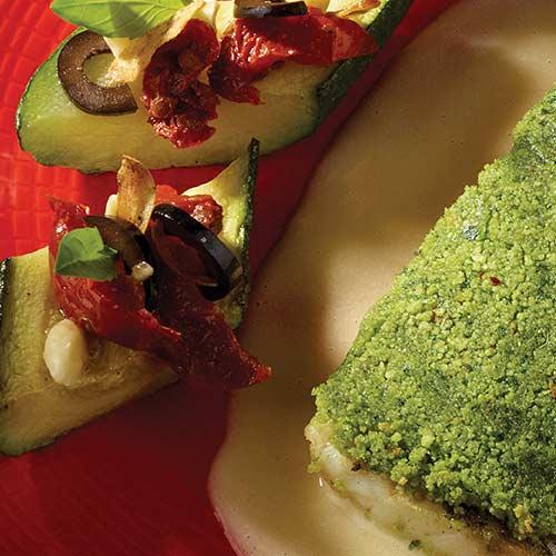 Filet de bar en croûte d'herbes, sauce beurre blanc